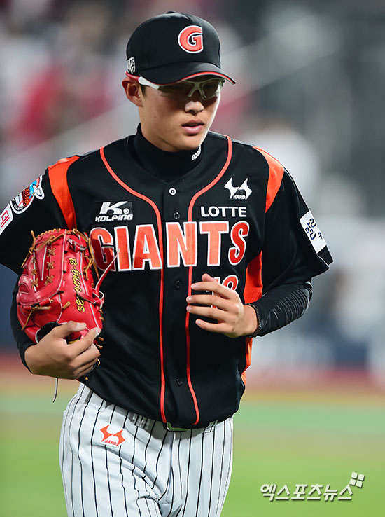[엑스포츠뉴스=수원, 김한준 기자] 15일 오후 경기도 수원시 장안구 수원kt위즈파크에서 열린 '2015 타이어뱅크 KBO리그' 롯데 자이언츠와 kt 위즈의 경기, 3회말 1사 1,3루 롯데 선발투수 박세웅이 마운드를 내려오고 있다.