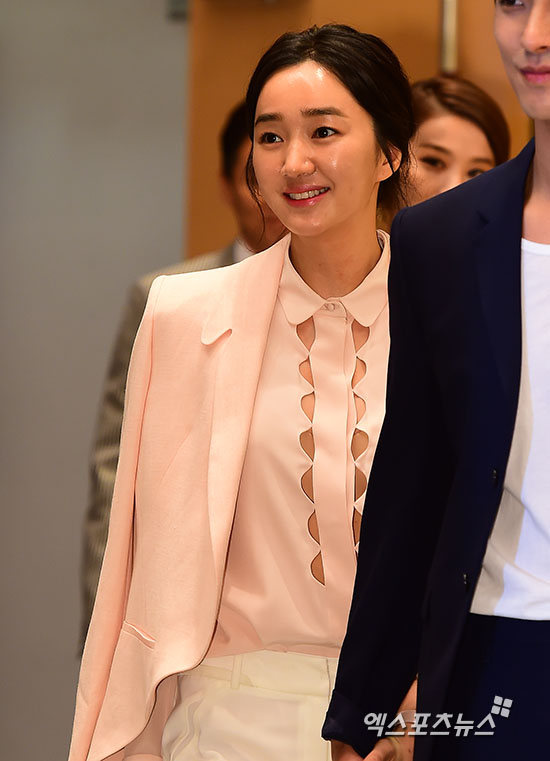 [엑스포츠뉴스=김한준 기자] 19일 오후 서울 목동 SBS사옥에서 열린 SBS 새 수목드라마 '가면' 제작발표회에 참석한 수애가 입장하고 있다.