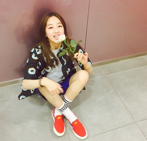 공개된 사진 속 박보람은 무릎을 세우고 앉은 채 꽃을 들고 있다. 특히 물오른 미모와 앙상한 두 다리가 눈길을 끈다.