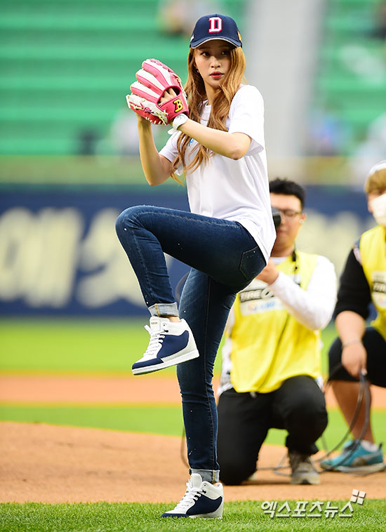 [엑스포츠뉴스=김한준 기자] 4일 서울 송파구 잠실야구장에서 열린 '2015 타이어뱅크 KBO리그' KIA 타이거즈와 두산 베어스의 경기,  걸그룹 EXID 하니가 시구에 임하고 있다.