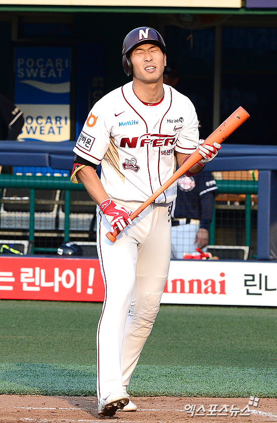 [엑스포츠뉴스=권태완 기자] 6일 오후 서울 양천구 목동야구장에서 열린 '2015 타이어뱅크 KBO리그' 두산 베어스와 넥센 히어로즈의 경기에 0:3으로 뒤진 3회말 1사 넥센 고종욱이 마야에게 삼진을 당하고 아쉬운 표정을 짓고 있다.