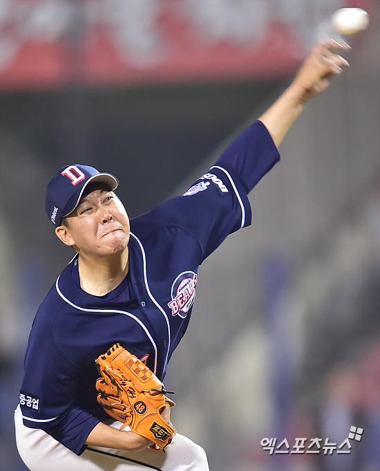 [엑스포츠뉴스=권혁재 기자] 9일 오후 서울 송파구 잠실야구장에서 열린 '2015 타이어뱅크 KBO리그' 두산 베어스와 LG 트윈스의 경기, 두산이 5-1로 앞선 8회말 무사 1, 2 올시즌 첫 1군에 합류한 두산 이현승이 힘차게 공을 던지고 있다.