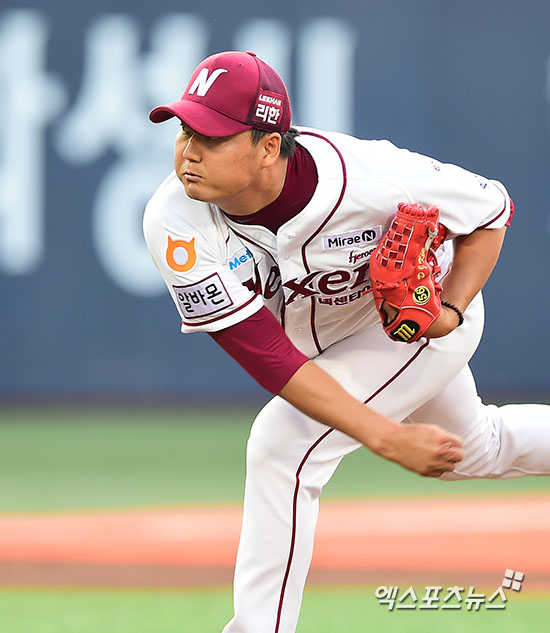[엑스포츠뉴스=김한준 기자] 19일 오후 서울 목동야구장에서 열린 '2015 타이어뱅크 KBO리그' LG 트윈스와 넥센 히어로즈와의 경기, 2회초 넥센 김동준이 공을 힘차게 던지고 있다.