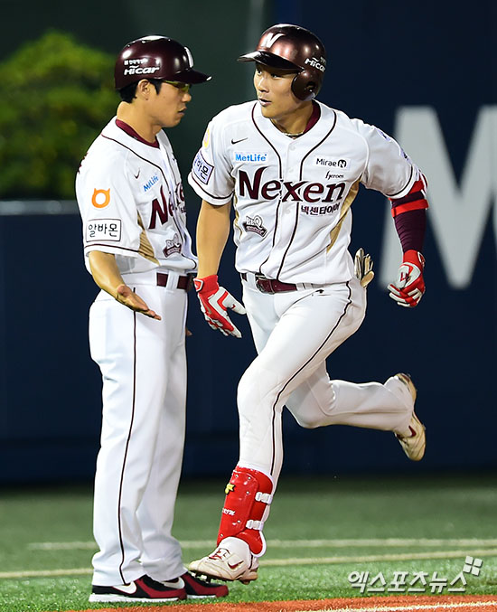 [엑스포츠뉴스=김한준 기자] 19일 오후 서울 목동야구장에서 열린 '2015 타이어뱅크 KBO리그' LG 트윈스와 넥센 히어로즈와의 경기, 6회말 1사 넥센 김하성이 솔로 홈런을 날린 후 그라운드를 돌고 있다.
