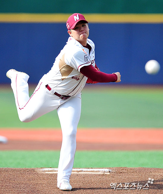 [엑스포츠뉴스=김한준 기자] 21일 오후 서울 목동야구장에서 열린 '2015 타이어뱅크 KBO리그' LG 트윈스와 넥센 히어로즈와의 경기, 1회초 넥센 선발투수 한현희가 공을 힘차게 던지고 있다.