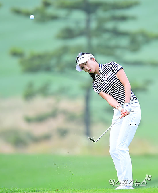 [엑스포츠뉴스=안산, 김한준 기자] 25일 오전 경기도 안산 아일랜드 리조트 코리아(파72·6490야드)에서 열린 '비씨카드·한경 레이디스컵 2015(총상금 7억원, 우승상금 1억4000만원)' 1라운드 경기, 윤채영(28, 한화)이 1번홀 세컨샷을 날리고 있다.