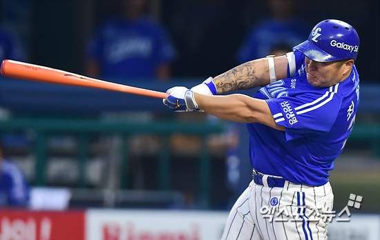 최형우 '섹시 팔근육 선보이며 투런포 쾅'[포토]