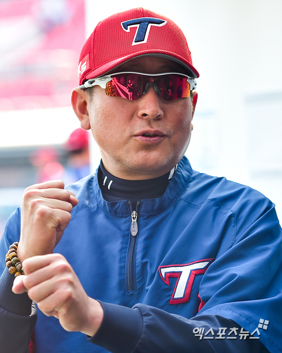 '타격 자세까지 취하며 인터뷰 하는 KIA 김기태 감독'[포토]