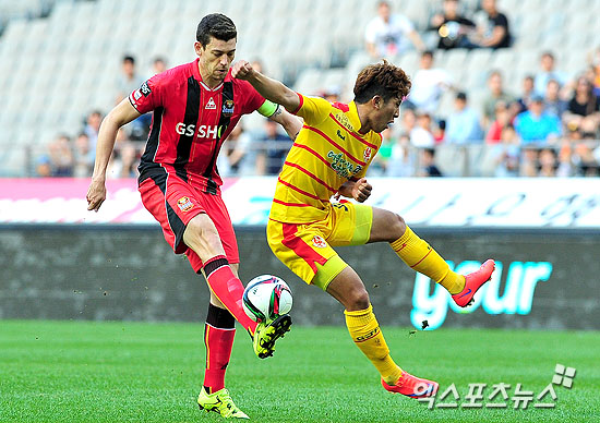 [엑스포츠뉴스=권태완 기자] 5일 오후 서울 상암동 서울월드컵경기장에서 열린 '2015 현대오일뱅크 K리그 클래식' FC 서울과 광주 FC의 경기에 서울 오스마르가 크로스를 올리고 있다.