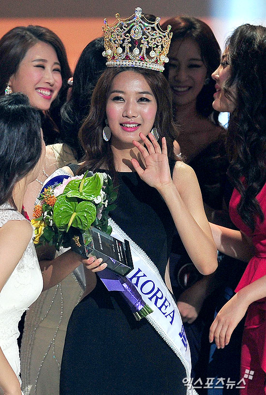 [엑스포츠뉴스=권태완 기자] 10일 오후 서울 능동 유니버셜아트센터에서 열린 '2015 미스코리아 선발대회'에 진에 당선된 이민지(24, 미스 경기)가 가족들과 친구들에게 인사를 하고 있다.
