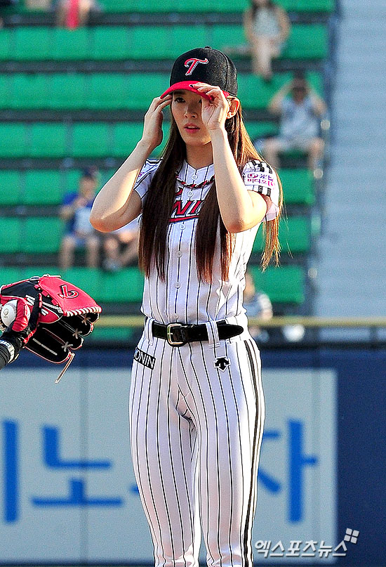 [엑스포츠뉴스=권태완 기자] 26일 오후 서울 송파구 잠실야구장에서 열린 '2015 타이어뱅크 KBO리그' LG 트윈스와 kt 위즈의 경기에 모델 유승옥이 시구를 위해 모자를 쓰고 있다.