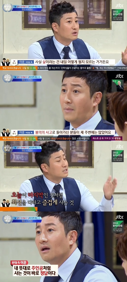 [엑스포츠뉴스=나금주 기자] '비정상회담' 이훈이 삶에 대한 자신의 생각을 밝혔다.