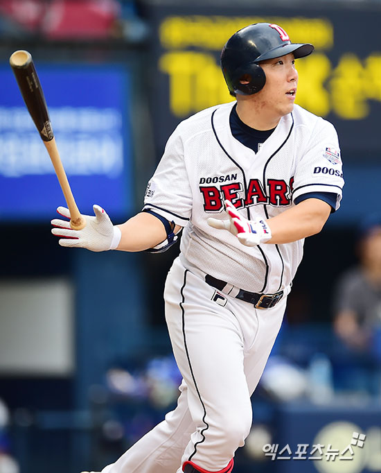 [엑스포츠뉴스=김한준 기자] 1일 오후 서울 송파구 잠실야구장에서 열린 '2015 타이어뱅크 KBO리그' 삼성 라이온즈와 두산 베어스의 경기, 1회말 1사 1루 두산 김현수가 타격을 하고 있다. 결과는 우익수 플라이 아웃.