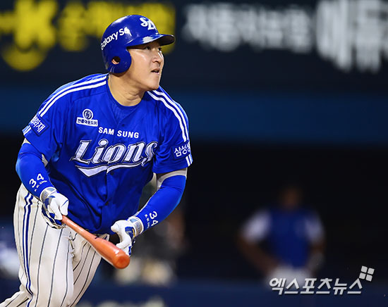 [엑스포츠뉴스=김한준 기자] 1일 오후 서울 송파구 잠실야구장에서 열린 '2015 타이어뱅크 KBO리그' 삼성 라이온즈와 두산 베어스의 경기, 5회초 2사 1,3루 삼성 최형우가 타격을 하고 있다.
