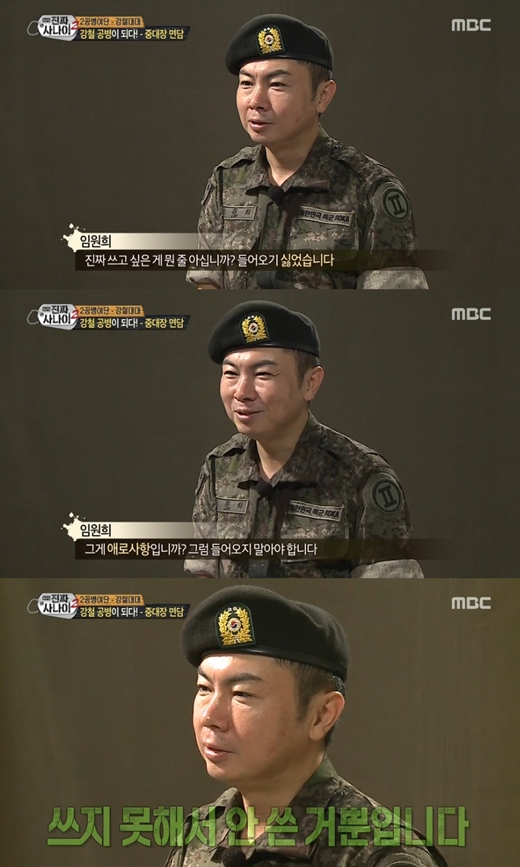 이날 중대장은 면담 과정에서 "임원희 이병은 애로사항이 없다"라며 임원희를 지목했다. 이에 임원희는 "쓰게 되면 한도 끝도 없을 것 같아서 안 썼다"라고 밝혔다