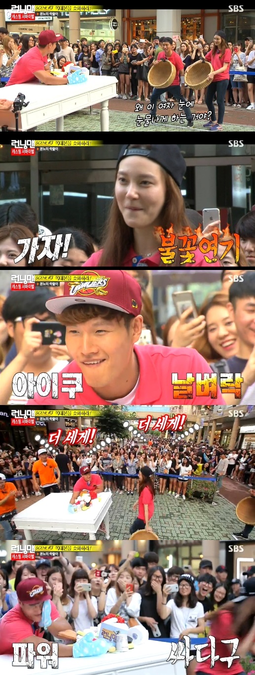 이날 김종국이 던진 물건을 10개 이상 바구니에 받아야 하는 차예련과 개리. 개리는 김종국의 분노를 끌어내기 위해 "왜 이 여자 눈에 눈물나게 하는 거야"라고 연기했다.
