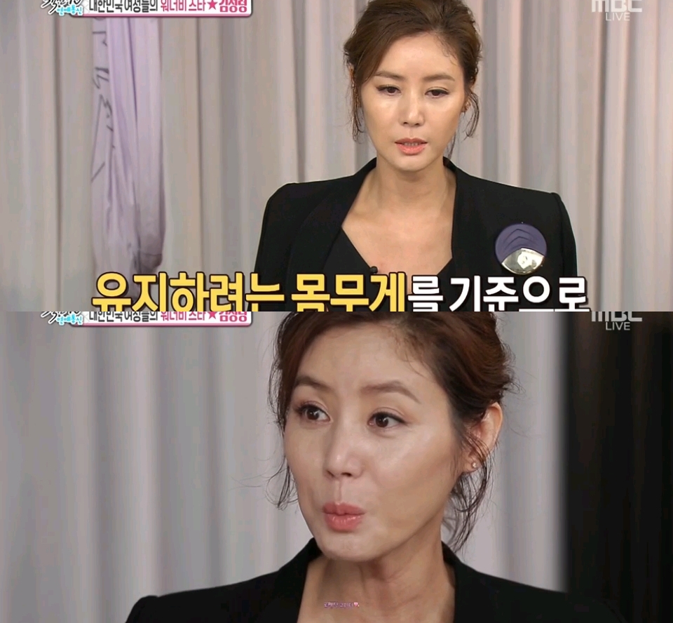 이날 김성령은 몸매 비결을 묻는 질문에 "실제 몸무게는 52kg가 넘는다. 유지하려는 몸무게를 기준으로 관리한다"고 웃으며 얘기했다.