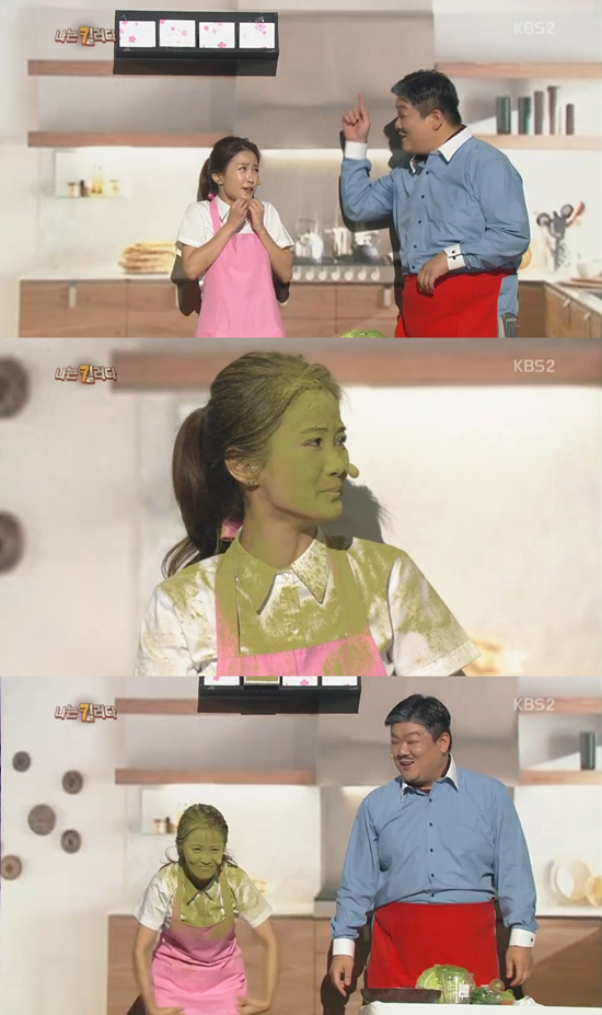 [엑스포츠뉴스=원민순 기자] 개그우먼 김지민이 녹색가루 폭탄에 헐크로 변신했다.