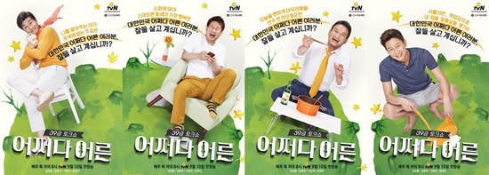 오는 9월 10일 오후 8시에 첫 방송될 '어쩌다 어른'은 중후함의 무게를 내려놓은 김상중과 '소통'의 아이콘으로 거듭나고 있는 남희석, 시원한 입담을 자랑하는 서경석과 양재진 전문의가 '공감 백배 토크'를 이끌어 간다.