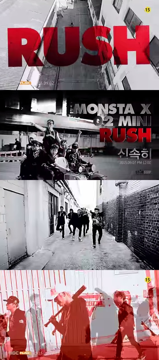 몬스타엑스는 4일 소속사 스타쉽엔터테인먼트 공식 유튜브 채널을 통해 '신속히(RUSH)'의 첫 선을 보였다. 이 영상에서 몬스타엑스는 곡의 이름과 같이 길거리를 누벼 눈길을 끌었다.