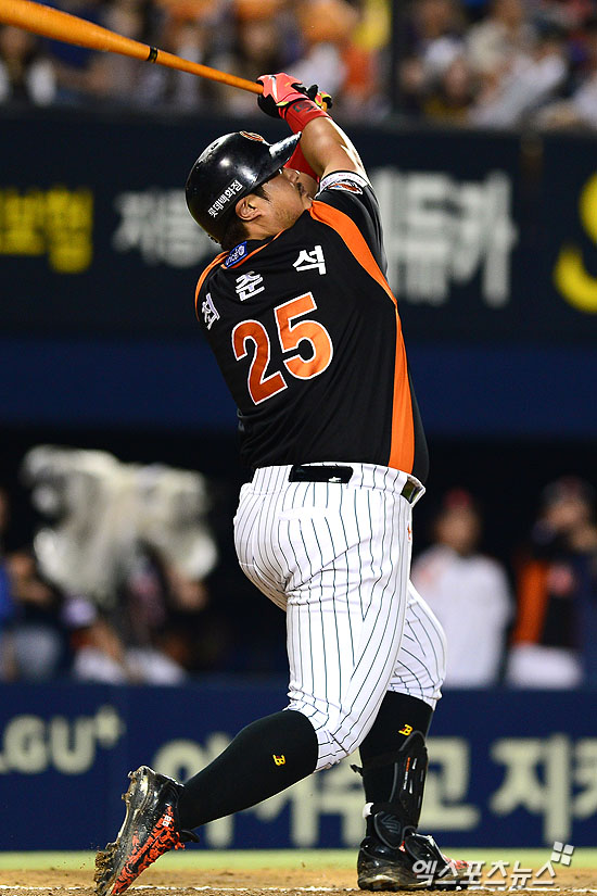 최준석 '좀 뜨긴 했지만 힘으로 넘긴다'[포토]