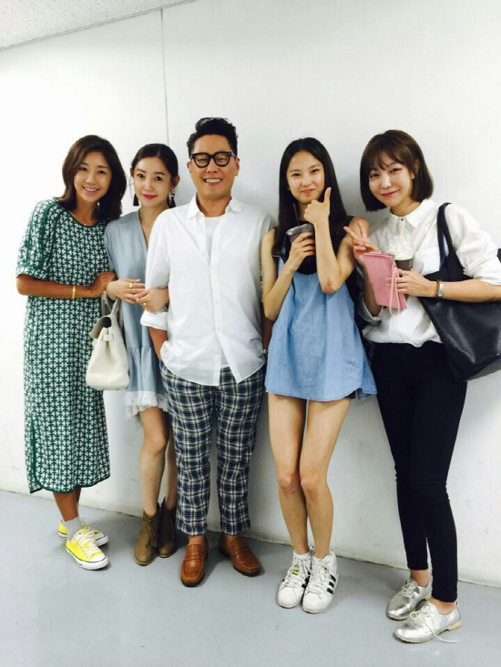 여군특집 멤버들은 윤종신과 오밀조밀 모여 활짝 미소를 짓고 있다.
