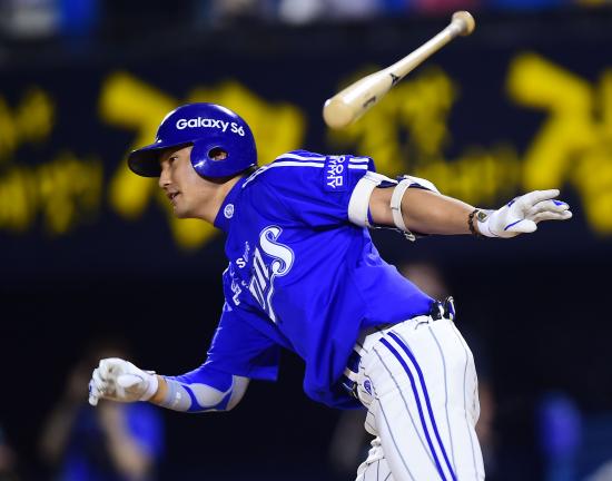 [엑스포츠뉴스=사직, 이지은 기자] 삼성 라이온즈 김상수가 달아나는 솔로포를 때려냈다.