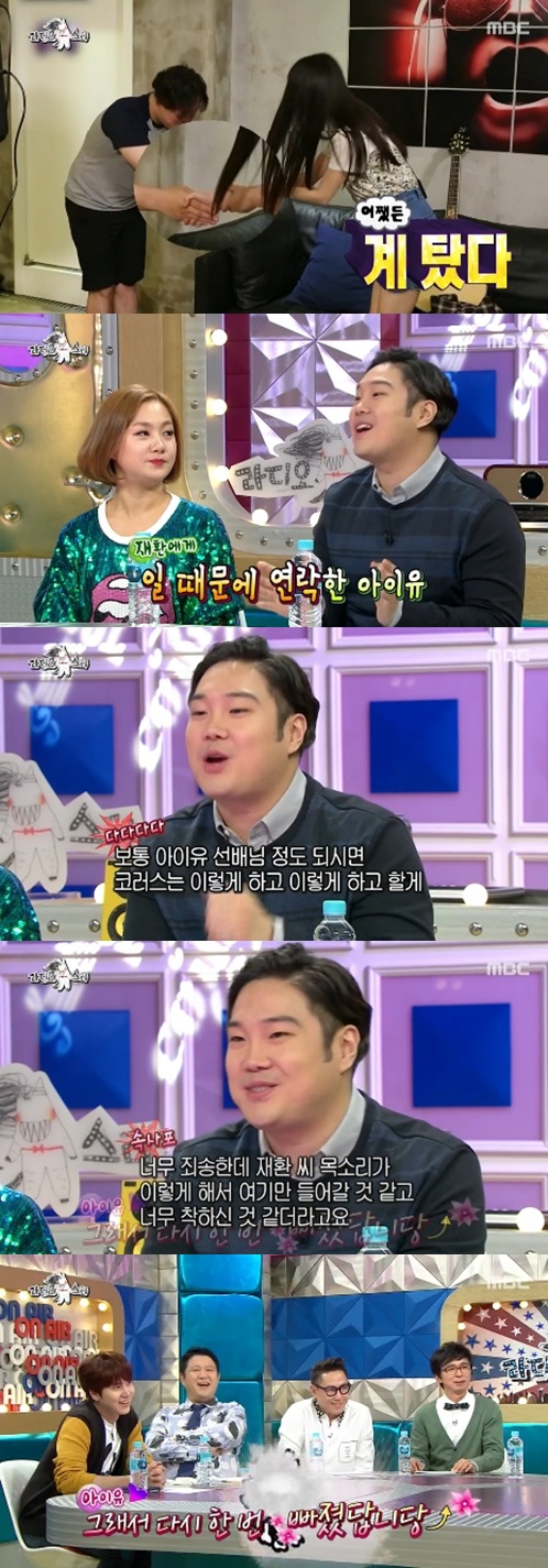 MBC '무한도전'에서 아이유의 열혈 팬임을 인증한 유재환은 '아이유에게 먼저 연락이 왔다는데'라는 MC들의 말에 "사적인 연락은 아니고 공적인 연락이었다"고 입을 열었다.