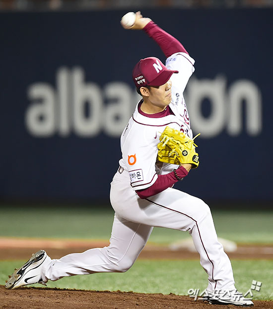 [엑스포츠뉴스=김한준 기자] 24일 오후 서울 목동야구장에서 열린 '2015 타이어뱅크 KBO리그' SK 와이번스와 넥센 히어로즈와의 경기, 7회초 1사 만루 넥센 금민철이 공을 힘차게 던지고 있다.