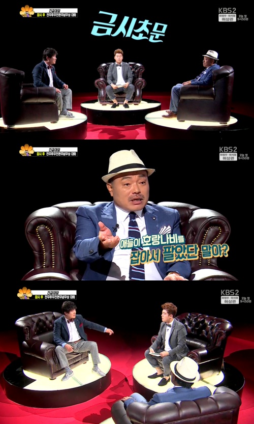 이에 김흥국은 "애들이 호랑나비를 잡아서 팔았다는 거냐. 내가 엄청난 나비효과를 일으킨 거냐"라며 너스레를 떨었고, 이계인은 "내가 아는 애 있다. 나비를 칠백마리 잡았다고 한다"라며 설명했다.