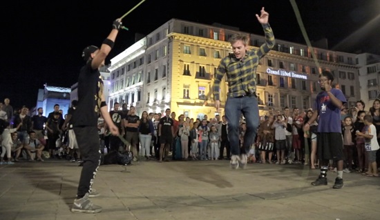친구들은 광장에서 진행 중이던 다양한 공연을 둘러보며 아침과 다른 분위기에 잔뜩 취했다. 특히 줄넘기를 이용해 공연을 펼치는 사람들에게서 눈을 떼지 못했다. 그러던 중 한 공연가가 갑자기 기욤을 지목하며 묘기에 도전하기를 권했다.