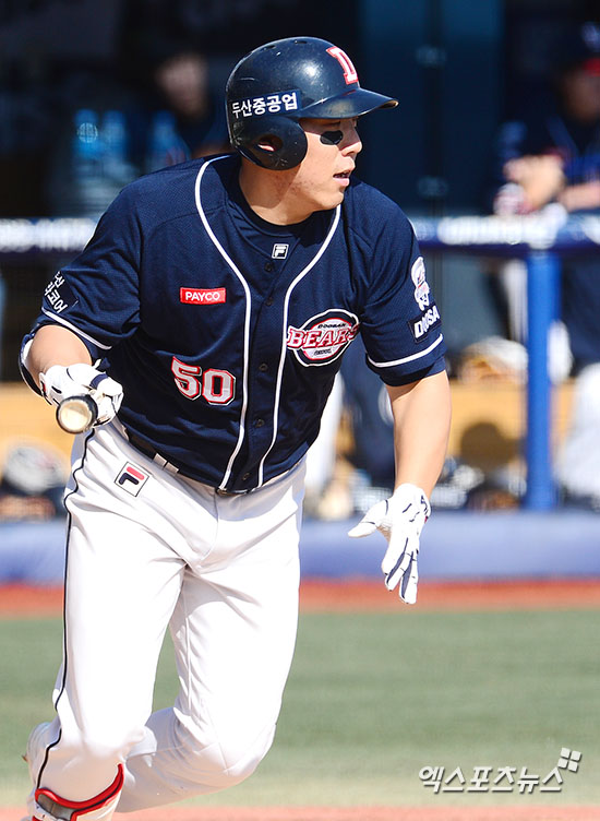 [엑스포츠뉴스=창원, 김한준 기자] 18일 오후 경남 창원 마산야구장에서 열린 '2015 타이어뱅크 KBO리그 포스트시즌' 두산 베어스와 NC 다이노스의 플레이오프 1차전 경기, 1회초 1사 2루 두산 김현수가 1타점 적시타를 날리고 있다.