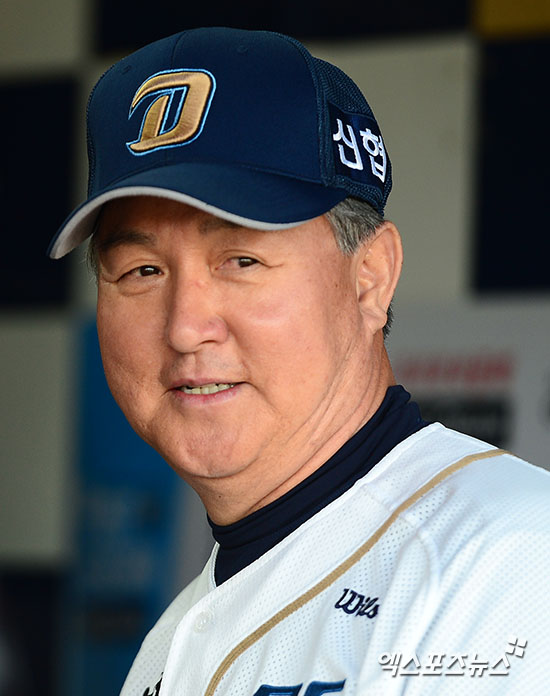 [엑스포츠뉴스=창원, 김한준 기자] 19일 오후 경남 창원 마산야구장에서 열린 '2015 타이어뱅크 KBO리그 포스트시즌' 두산 베어스와 NC 다이노스의 플레이오프 2차전 경기, NC 김경문 감독이 취재진과 대화를 나누고 있다.