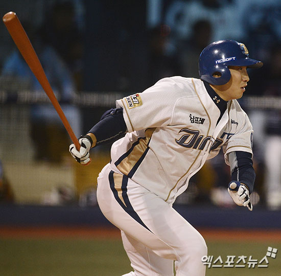 [엑스포츠뉴스=창원, 김한준 기자] 19일 오후 경남 창원 마산야구장에서 열린 '2015 타이어뱅크 KBO리그 포스트시즌' 두산 베어스와 NC 다이노스의 플레이오프 2차전 경기, 1회말 2사 1,2루 NC 나성범이 타격을 하고 있다.
