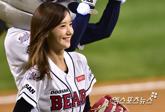 [엑스포츠뉴스=권혁재 기자] 21일 오후 서울 송파구 잠실야구장에서 열린 '2015 타이어뱅크 KBO리그 포스트시즌' NC 다이노스와 두산 베어스의 플레이오프 3차전 경기, 경기전 시구를 마친 소녀시대 윤아가 팬들을 향해 인사를 하고 있다.