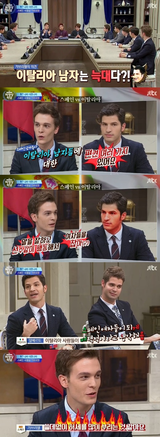 이에 가브리엘은 "스페인 남자들이 생각하기에 이탈리아 남자들은 쓸데없이 허세를 많이 부리는 것 같다"며 공격을 멈추지 않았다.