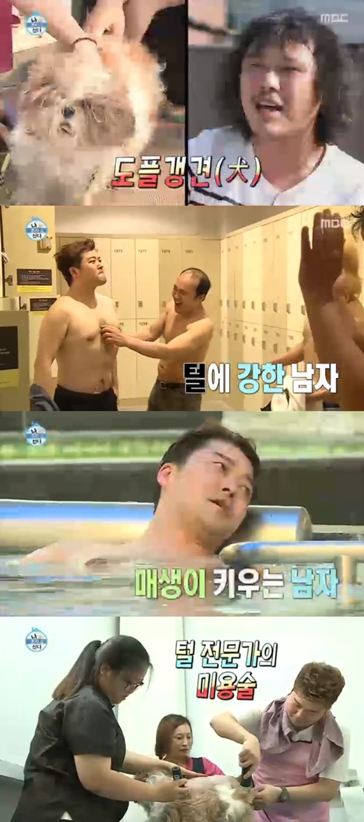 이날 전현무는 털이 길게 자란 개를 보고 "육중완 닮았다"라며 육중완을 언급했다. 이어 전현무는 개의 털을 직접 밀었고, 전문 애견미용사들은 "잘하신다"라며 칭찬했다.