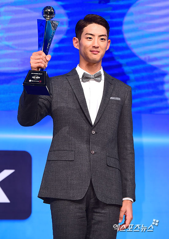 [엑스포츠뉴스=김한준 기자] 24일 오후 서울 양재동 The-K 호텔 컨벤션센터에서 열린 '2015 타이어뱅크 KBO 시상식’에서 신인왕를 차지한 삼성 구자욱이 기념촬영을 갖고 있다.