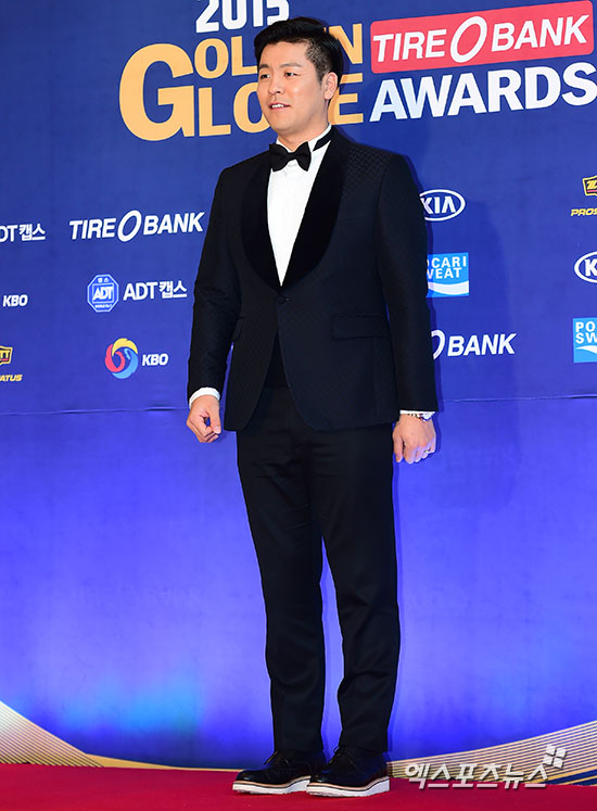 [엑스포츠뉴스=김한준 기자] 8일 오후 서울 양재동 The-K 호텔 컨벤션센터에서 열린 '2015 타이어뱅크 KBO 골든글러브 시상식'에 참석한 강민호가 포토타임을 갖고 있다.