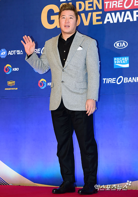 [엑스포츠뉴스=김한준 기자] 8일 오후 서울 양재동 The-K 호텔 컨벤션센터에서 열린 '2015 타이어뱅크 KBO 골든글러브 시상식'에 참석한 최형우가 포토타임을 갖고 있다.