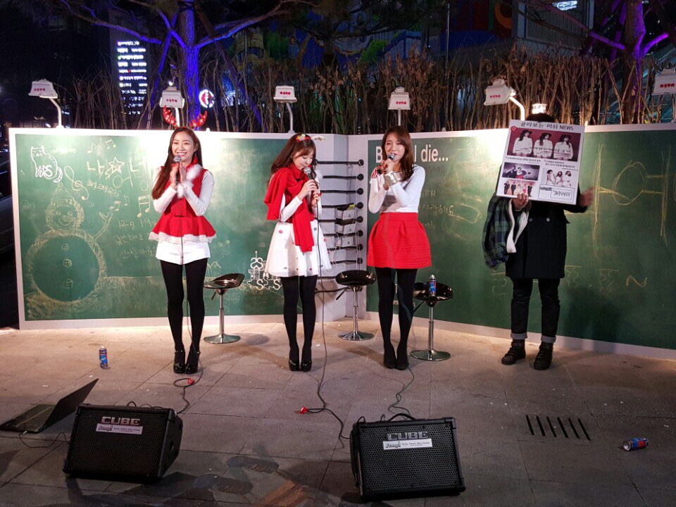 러쉬, 미모의 산타로 변신 후 홍대 버스킹 '열광'