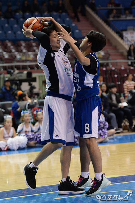 [엑스포츠뉴스=박지영 기자] 10일 오후 서울 송파구 잠실실내체육관에서 열린 2015-201616 KCC 프로농구 올스타전 연예인 농구팀과 유소년 올스타의 오프닝 경기, 연예인 농구팀 김태우가 패스를 시도하고 있다.