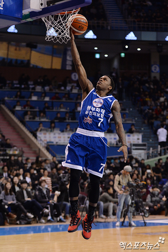[엑스포츠뉴스=박지영 기자] 10일 오후 서울 송파구 잠실실내체육관에서 열린 '2015-2016 KCC 프로농구 올스타전' 주니어 올스타와 시니어 올스타의 경기, 스피드 대결에서 조 잭슨이 슛을 시도하고 있다.