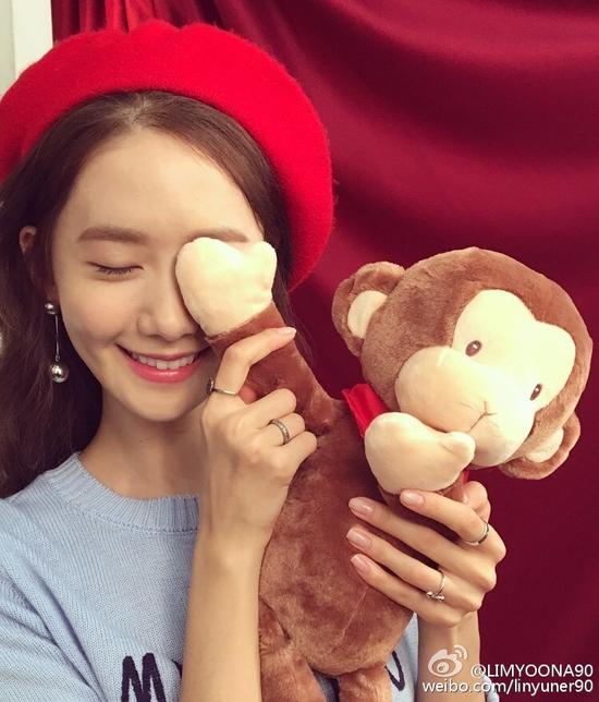 공개된 사진 속 윤아는 빨간색 모자를 쓰고 원숭이 인형 손을 들고 훈훈한 미소 짓고 있으며, 여성스러우면서도 귀여운 매력을 발산하고 있다.