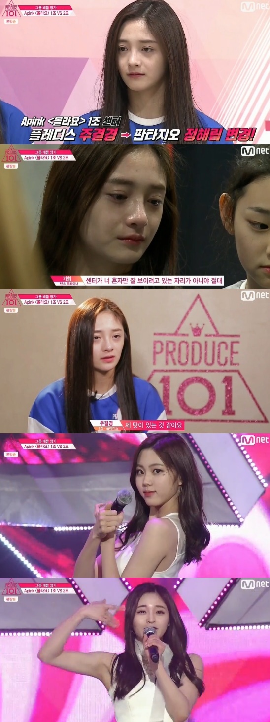 '프로듀스 101' 주결경, 팀 센터 교체 후 눈물