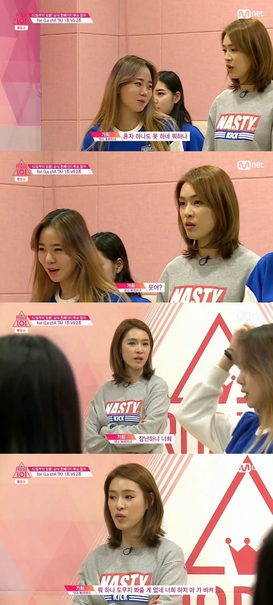 [엑스포츠뉴스=나금주 기자] '프로듀스 101' 가희가 가사와 안무를 제대로 숙지해오지 못한 연습생들에게 화를 냈다.
