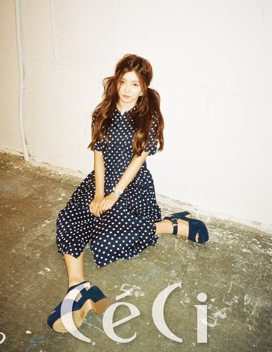 공개된 화보에서 김유정은 물방울 무늬가 프린트 된 원피스를 입고 반항적인 눈빛을 선보였다.