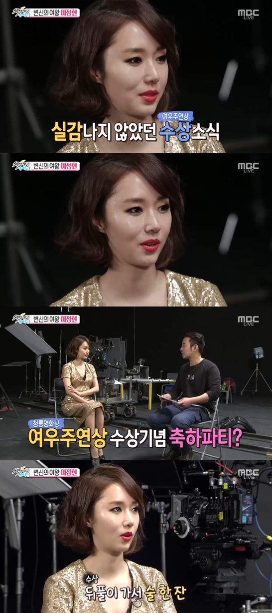 이날 이정현은 청룡영화상 여우주연상에 대해 "정말 안 믿겼다"며 "그날 집에 가서 울었다. 주변에서 전화가 많이 왔다"고 말했다.