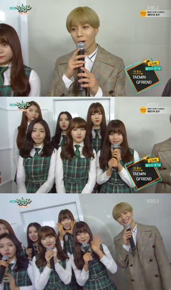 4일 방송된 KBS 2TV '뮤직뱅크'에는 여자친구와 태민이 1위 자리를 놓고 맞붙게 됐다.