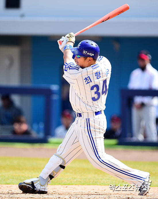 ​[엑스포츠뉴스=대구, 김한준 기자] 22일 오후 대구삼성라이온즈파크에서 열린 '2016 타이어뱅크 KBO 리그' LG 트윈스와 삼성 라이온즈의 시범경기, 3회말 2사 2루 삼성 최형우가 1타점 적시타를 날리고 있다.